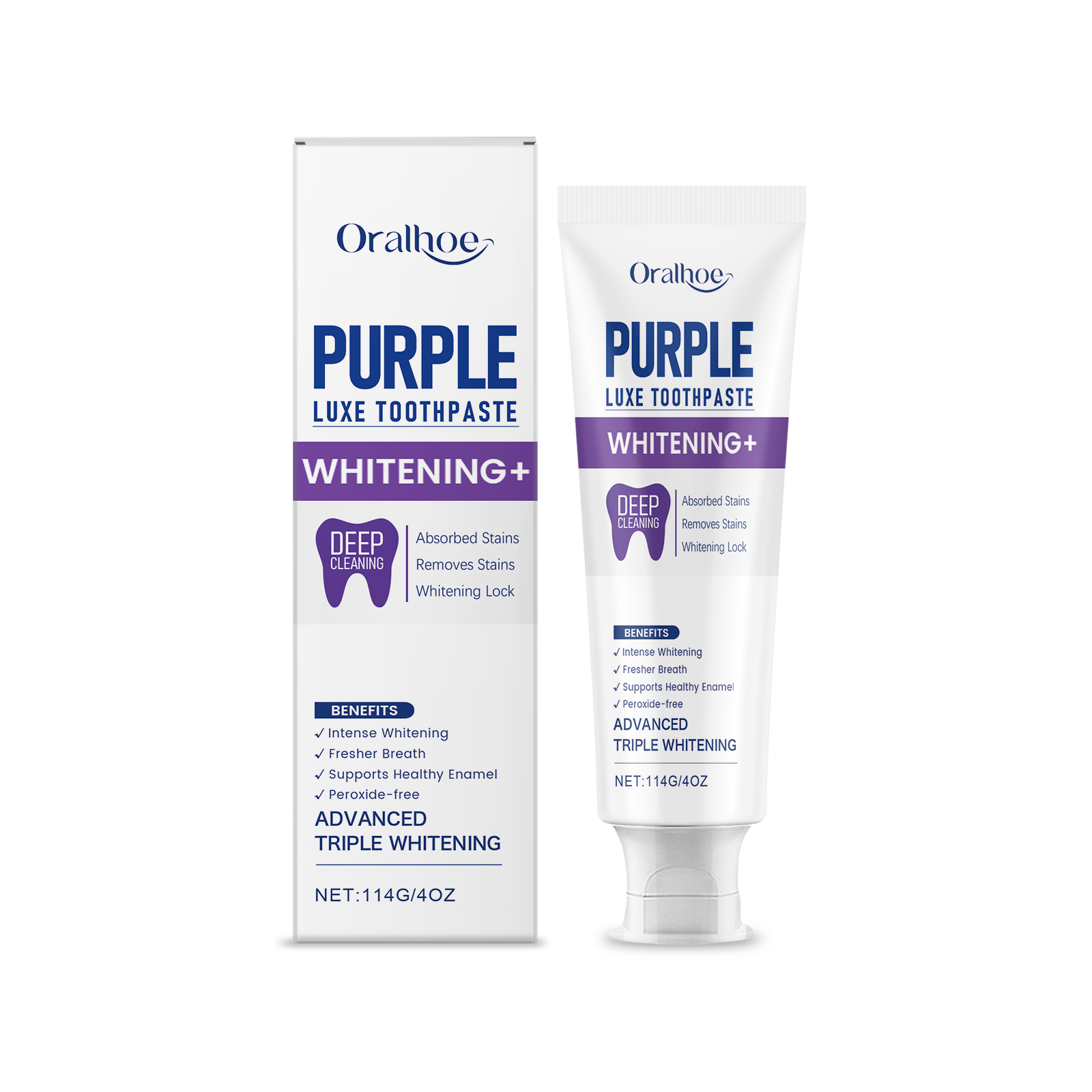 Say goodbye to stubborn stains and embrace your teeth's natural whiteness! Oralloe Purple Luxe Toothpaste uses revolutionary triple-whitening technology to deliver a safe and effective daily oral care experience. ✨